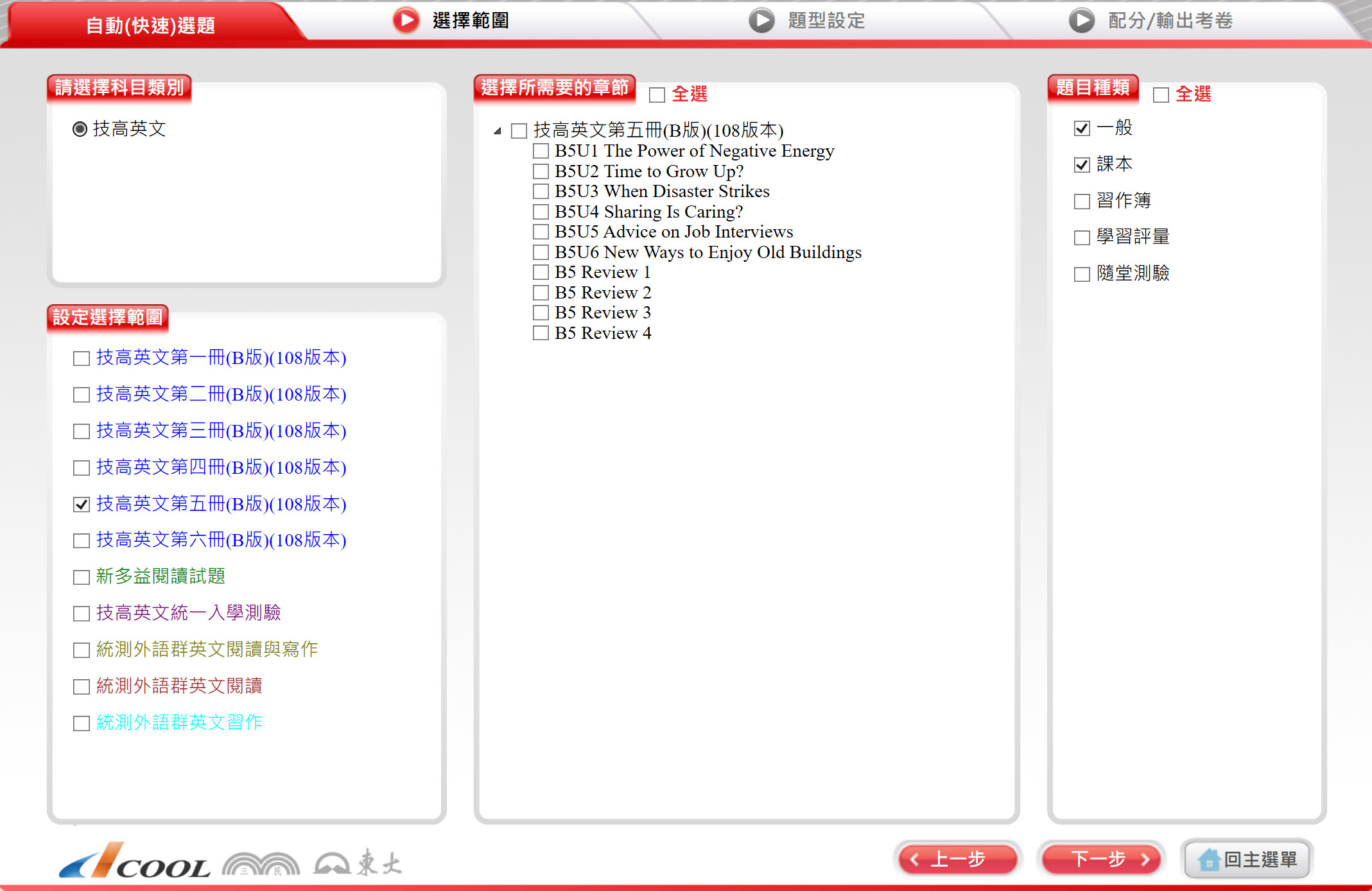 112學年上學期 技術高中命題光碟 三民東大版 英文科(B版 1-6冊)(108課綱) 題庫光碟