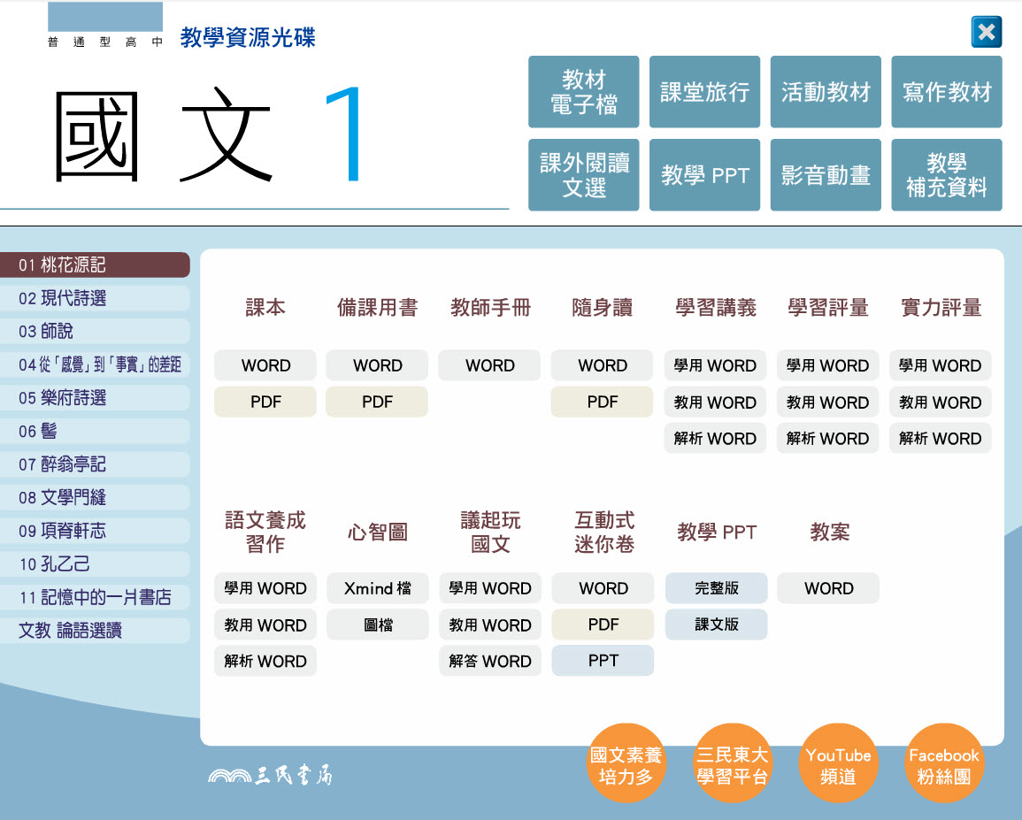 高中 三民版 國文科 1年級 教學光碟